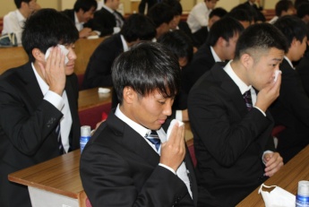 株式会社マンダム様には、男子学生向けのスキンケアの方法や清潔感ある身だしなみの指導をしていただきました。実際に、数種類の匂いを確かめた学生は、清潔感の大切さをより感じ、就活に向けて新たな気づきを得ていました。