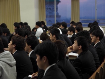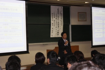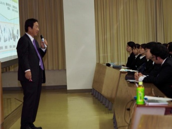 お知らせ NEWS & TOPICS トップページ お知らせ お知らせ 企業トップセミナー(三菱電機株式会社 顧問 堤 和彦氏によるご講演)を開催しました 2017.11.30 企業トップセミナー(三菱電機株式会社 顧問 堤 和彦氏によるご講演)を開催しました 平成29年11月30日(木)に大学院1年生・全学部3年生を対象とした就職支援講座 企業トップセミナーを開催しました。三菱電機株式会社 顧問 堤 和彦氏をお迎えして、『産業界の現状と技術者への期待 -三菱電機の事例を中心に-』という内容でご講演いただきました。三菱電機のキーとなる技術を軸に、日本を取り巻く環境の変化や、企業技術者に求められるものを動画を交えながら話されました。最後に、本学学生に対して「よき家庭人、社会人、会社人であれ!」という力強いエールをいただき、学生たちは、社会人になるための心構えを学びました。 お問い合わせ:就職支援課 PREV 一覧に戻る NEXT