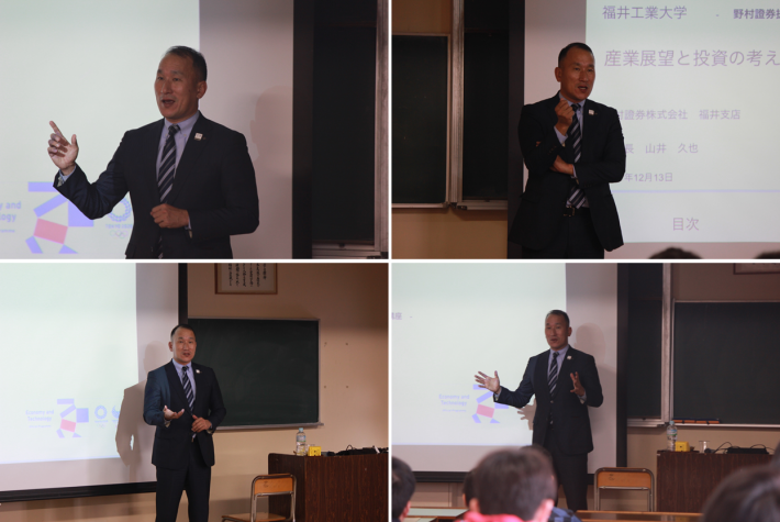 平成29年12月13日(水)4時限目の地域共生学で、野村證券株式会社 福井支店長 山井久也氏より「産業展望と投資の考え方」をテーマにご講義していただきました。