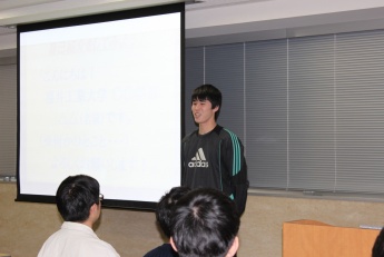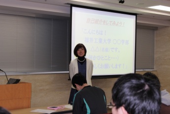 フリーアナウンサーの天谷ゆか氏を講師に招き、自分の声の分析、面接で必要な『伝わる声』『伝わる話し方』『伝わる声の作り方』などの説明を聞き、実践しました。また、30秒自己紹介では、講師から参加学生一人ずつにアドバイスをいただきました。自分のクセに気づき、間の取り方や「伝えたいという気持ち」で話すことを意識して、再度、自己紹介した学生は、最初に比べて、かなり好感のある話し方に変わりました。また、他の学生が話す様子を見ることも、勉強になったとの意見もあり、今後、就活の面接でも活かしたいとの声が聞かれました。