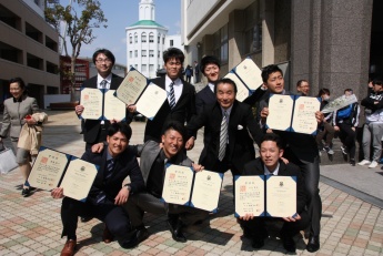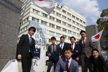 穏やかな春の日差しのもと、大学院工学研究科博士後期課程修了生 3名、工学研究科博士前期課程修了生 17名、工学部卒業生 522名、計 542名(うち留学生 25名)が本学の学び舎を巣立っていきました。