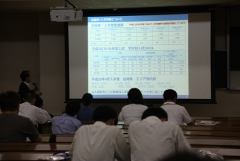 平成31年度入試における変更点や入試結果で採用される奨学金制度について、参加者の方々は時折メモを取りながら熱心に話を聞かれていました。
