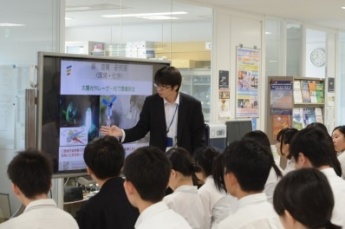 『優良企業とは?』というテーマで模擬授業を行った。企業を取り巻く利害関係者(ステークホルダー)は様々であり、その立場によって『優良企業』の捉え方が異なる。今回は、株主の立場に立って分析を行った。株主が企業に投資するのは、利益の一部を配当金として分配してもらうためである。しかしながら、できるだけ多くの利益を獲得するためには、ただ漠然と事業活動を行うのではなく、経営戦略を立案することが必要不可欠である。経営戦略は企業ごとに異なり、その特徴を明らかにするため、企業間比較(ゲンキー、クスリのアオキ)を行い、その解説を行った。また、日本経済新聞社が主催している日経STOCKリーグ(2000年から始まった中・高・大学生のための株式学習コンテスト)の案内と昨年度の実績(上位10%のチームが入る一次予選通過)の報告を行った。