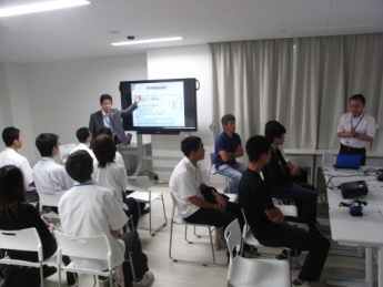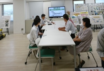 学科の特徴、カリキュラム、仕事、就職先、プロジェクト、研究室などについて概説しました。また、パネルによる研究室紹介も行いました。