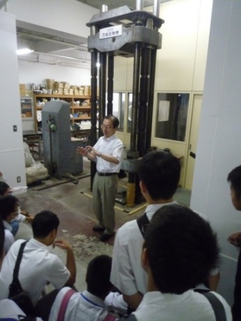 3号館1階にある構造実験室と2号館3階にある城郭研究所を見学してもらい、授業や活動の内容について説明しました。