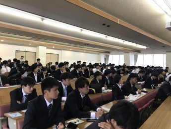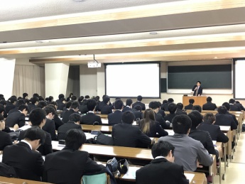 いよいよ本格的な就活に向けて「自己分析」や「業界・職種研究」についての説明に、熱心に耳を傾けていました。実際に携帯アプリを用いて、ワークをしたり、自分の考えを文章にしたことで、自己PRの作成が思っていたよりも難しいことを実感した、また企業研究についても今から少しずつ進めていきたいと、就活が身近に迫ってきたことを感じる学生も多くいたようです。