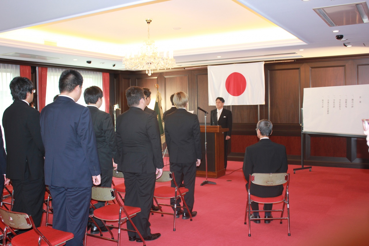 掛下学長は式辞の中で「皆様が本日、卒業できたことは皆様の努力ももちろんですが、保護者の方々・指導していただいた教職員の方々・友人の方々の温かい支援によるものであることを胸に刻んで感謝の気持ちを持ってこれからの人生を頑張ってほしいと思います。」との言葉を卒業生へ送りました。
