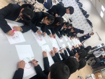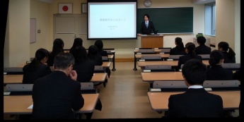 本学の概要説明後、2班に分かれ経営情報学科とデザイン学科の学科体験をしました。
