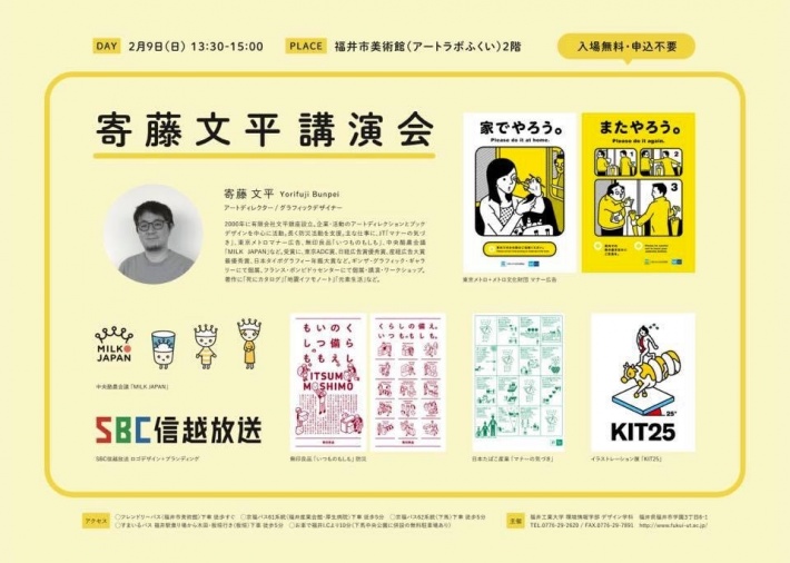 また、この展覧会に併せて、グラフィックデザイナーとして世界的に活躍する寄藤文平氏をお招きして、講演会を開催いたしますので、ぜひご参加ください。