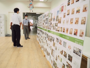 デザイン学科が実習やゼミ活動で利用する教室を紹介しながら、デザイン制作に使用する様々な機材が紹介されました。また、パネルを使用して今まで行ってきた活動やプロジェクトを紹介し、デザインとはどのような学びであるのかをレクチャーしました。