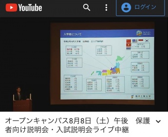 Live配信は、「YouTube福井工業大学公式チャンネル」から配信しました。オンライン説明会は、Zoomアプリを利用し、各学科の教員から学科の学びについての説明を聞くことができました。また、直接質問することが出来るため具体的な内容についても説明を受けることが出来ました。
