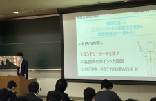 (株)マイナビ様より講師をお招きし、エントリーシートの概要や書く上での注意事項などをご説明いただき、その後、ワークシートを使って自己PRやガクチカ(学生時代に力を入れたこと)を作成しました。