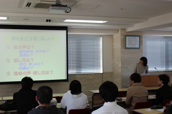 お知らせ NEWS & TOPICS トップページ お知らせ お知らせ ヴォイストレーニングセミナー(就職試験対策講座⑤)を開催しました 2014.11.19 ヴォイストレーニングセミナー(就職試験対策講座⑤)を開催しました フリーアナウンサー あまや ゆか 氏 平成26年11月19日(水)に就職試験対策講座5として、大学院1年生・工学部3年生を対象に『 ヴォイストレーニングセミナー 』を開催しました。福井県中小企業団体中央会様のご支援をいただき、フリーアナウンサー あまや ゆか 氏を講師に招き、自分の声の分析・面接で必要な『伝わる声』『伝わる話し方』『伝わる声の作り方』などをアドバイスしていただきました。 お問い合わせ:就職支援課 PREV 一覧に戻る NEXT