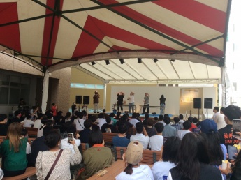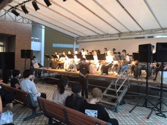 大学祭2日目は、曇り模様のなか、オープニングは吹奏楽部による演奏から華やかに始まりました。
