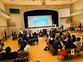 お知らせ NEWS & TOPICS トップページ お知らせ お知らせ 令和5年度新入留学生歓迎会を開催しました. 2023.04.27 令和5年度新入留学生歓迎会を開催しました. 4月26(水)、金井講堂において、今年度の新入留学生歓迎会が開催され、60名を超える留学生が参加しました。今年度は学友会とインターナショナルクラブの先輩スタッフが共同で、会場受付や司会・進行を担当しました。初めに掛下学長とブラッドフォード・リー インターナショナルセンター長から開会のご挨拶があり、その後は在学生が考案した福井クイズやジェスチャーゲームをチーム対抗戦で行いました。上位チームには福井県の特産品の贈呈があり盛大な盛り上がりをみせました。 学務課では、留学生の充実した学生生活を全力でサポートしていくこととしています。 お問い合わせ:学務課 PREV 一覧に戻る NEXT