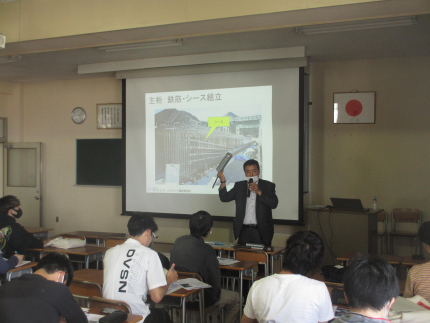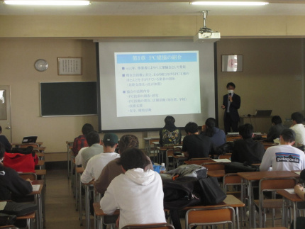 2023年5月23日(火)、工学部建築土木工学科3年の土木施工の授業において、コンクリート橋に関する出前講義を開催いたしました。講師は、(一社)プレストレストコンクリート建設業協会より派遣された(株)日本ピーエス菅原氏と川田建設(株)板谷氏です。