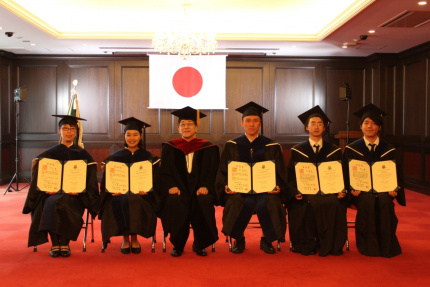 掛下学長は、式辞の中で、社会に進むにあたっての心構えは、身に着けた基礎知識を縦横に駆使すること、新たな分野に挑戦できる柔軟性を持つこと、それに取り組む継続的な努力を失わないことである。その心構えは、すでに大学・大学院教育を受けた皆さんに備わっている。自信をもって社会へ出て欲しい、と旅立ちに際してのエールを送りました。