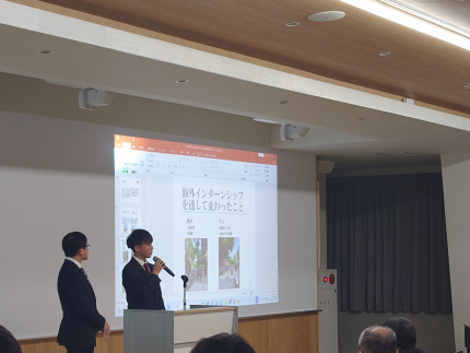 お知らせ NEWS & TOPICS トップページ お知らせ お知らせ 令和5年度海外インターンシップ学内成果発表会を開催しました 2023.10.13 令和5年度海外インターンシップ学内成果発表会を開催しました 令和5年10月12日(木)、今年度の海外インターンシップに参加した学生による研修成果発表会を学内にて開催しました。 研修を受け入れていただいた企業様や学内の関係者の方々をお招きし、現地での研修で頑張ったことや学んだこと、海外経験を踏まえての今後の学生生活の過ごし方などを発表しました。 海外インターンシップを通して学生自身の成長や今後の展望など、それぞれの成長を感じられる場となりました。 研修出発時よりも一回り成長した学生たちの今後の活躍が楽しみです。 改めて、今回のインターンシップにご協力いただきましたすべての方々に感謝申し上げます。 お問い合わせ:就職支援課 PREV 一覧に戻る NEXT