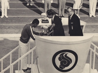 さらに福井県チームは初の天皇杯を獲得。吉村先生は福井県チームの代表として閉会式で高松宮殿下から天皇杯を受け取るという大役を果たす。「天皇杯は正式には白い手袋で受け取らなくてはいけないのですが、当日の行進の最中に指名されたので間に合わず、素手で受け取ることになりました」と笑う。「みんなの思いの代表として受け取った天皇杯は、本当に重く感じられました。いい想い出です」。