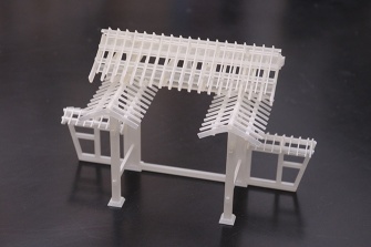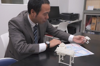 日本建築史が専門である多米教授。建築史の教授は歴史的な絵図の文献を紐解いていくアナログな作業が多いが、PCで図面や3Dにするなど、多角的に日本建築の歴史の研究をしている。「もともと図面を描くのが好きで、ストレス解消にもなりますし。3Dを作って人に見せた方が伝わりやすいですね。」多米教授は2013年に設立した福井工業大学のFUT福井城郭研究所の副所長も務めており、福井の城郭や城下町だけでなく、全国の城に関する調査研究を行なっている。公的でなく大学内にある城郭の研究所が設立されたのは全国で初めてで、福井城や姫路城など全国各地の城郭の写真や絵図などを展示して、一般の学生も立ち寄れる場所だ。多米教授はそこで3Dプリンターを使った福井城の全体的な骨組みを作ろうと取り組んでいた。