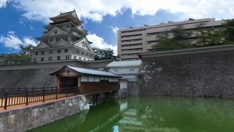 そんなときに舞い込んできた話が「福井城復元アプリ」だった。福井城は徳川家康の二男で福井藩初代藩主の結城秀康が慶長6(1601)年から6年の歳月をかけて築城し、約270年間17代にわたり越前松平家の居城として、その繁栄を示した名城。本丸を中心に四重・五重に堀が取り巻く輪郭式の大城で、本丸には四重五階、高さ約100尺(30m)の雄大な天守がそびえ立っていた。しかし寛文9年(1669)の大火で失われ、そのまま再建されないまま、現在は本丸周囲の石垣と内堀のみが残っている。それをVRで再現させようというのだ。学生たちと作った福井城の模型は研究所にあるが、それとは別に360度で人が実際に見るスケール感、城の詳細を照らし合わせていかなければならなかった。「どの絵図面を主として復元していくのか。いろいろと考えることはたくさんありました。」