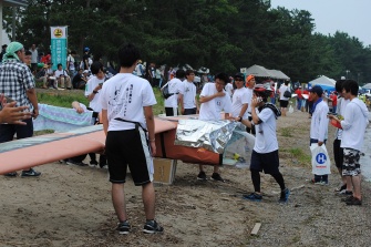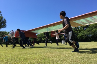 福井県内の大学や一般企業を含め、鳥人間コンテストに取り組んでいるのは福井工業大学のみ。そこで機体にインパクトをつけるために主翼と尾翼、そしてパイロットが乗るコックピットに『越前和紙』を使用して、福井県代表としての特色を出すことを考えた。これまでの素材のポリスチレンと比べ強度に不安があったが、飛行テストを何度も重ね改善を行うことで、実用レベルに強度を引き上げることに成功。そして翌年、越前和紙を使った機体の目新しさが評価され、書類審査を通過し本戦出場を果たす。「250mを目標に挑みましたが、助走が失敗し18.18メートルの記録になりました。結果は悔しかったですけど、仲間に出会え、力を合わせて1つのものを作り上げる楽しさを味わうことができました」。
