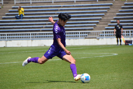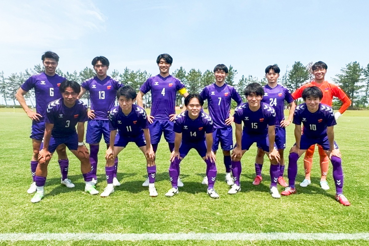1~4年生までサッカー部に所属し、ミッドフィールダーとして守備と攻撃の両方で活躍。中川さんが3年生だった2024年に、チームは北信越大学サッカーリーグ(以下リーグ)2部で準優勝し、リーグ1部への昇格が決定。翌年4月に行われた同リーグ第2節の試合が中川さんの記憶に大きく残るゲームとなった。「相手は強豪の新潟経営大学。試合が始まってすぐにうちが得点し、その後ずっと守り切って1対0で勝ちました。1部に上がっての初勝利が、非常に強いチームとの接戦の末だったので、ものすごくうれしかったし、自分にとってもチームにとっても自信につながる試合でした」。