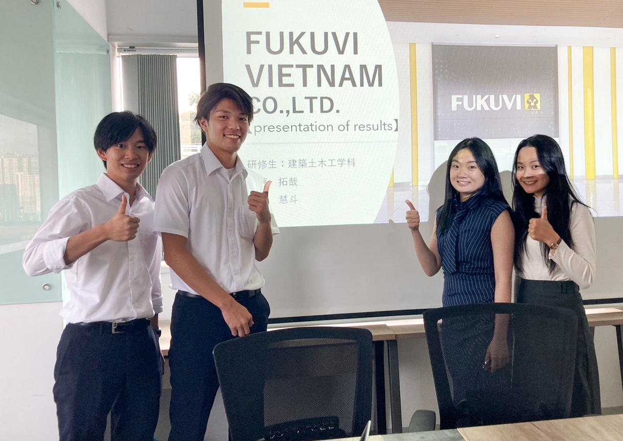 また、海外インターンシップではベトナムに2週間滞在。受け入れ先は建設資材などのプラスチック製品を製造するフクビ化学工業株式会社の子会社で、同社の取引先で働く日本人駐在員から海外勤務で大事なことなど聞く時間がメインだった。「建築現場の施工管理をされている方のお話が印象に残っています。海外で日本の技術を広めていく仕事に大きなやりがいを感じ、将来、海外勤務にも挑戦してみたいと思うようになりました」。