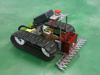 約10年前、テニス部の学生が「コート周りの草むらに散らばったボールを探すのがたいへん。草刈りできるロボットがあるといいよね」と話したのがきっかけで開発したのが草刈りロボットだ。安全性を考慮した「バリカン型」は、複数のハサミ状の刃を2段に並べて装着。上段の刃が動いて草を切断するが、静止状態の下段の刃が上段の刃より長いため、上段の刃が人や物に接触することはない。一方、刈り取った草が前方にたまりロボットの進行を妨げるのを解消しようと開発したのが「フレイル型」である。複数の刈刃を取り付けた軸を高速回転させ、刈り取った草を粉砕しながら進むため障害は発生せず、草を回収する必要もない。