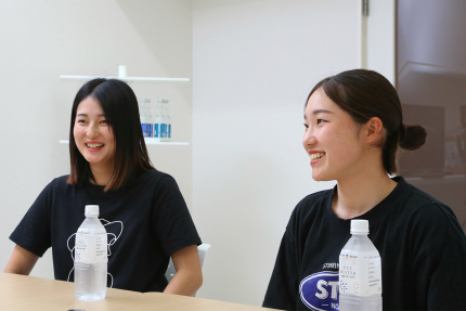 服部さん、中村さんはスポーツ健康科学科で、筋肉の動きやスポーツでの体の使い方、栄養学などを学んでいる。これらの知識はゴルフのための体づくりや、試合に向けての体調管理などにも役立っており、1日の摂取カロリーに注意したり、朝食に適した物を食べたりするなど日々の生活にも取り入れているという。