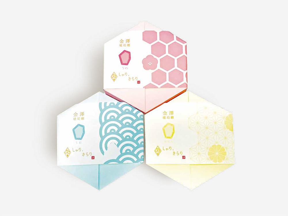 デザインの基礎から実践までを学んだ4年間の学部時代で、特に桐山さんの印象に残っている授業が2つあるという。その一つがコミュニケーションデザインという実習だ。「おもてなしをデザインする」という課題が出され、桐山さんが制作したのは、福井県を訪れた外国人観光客に向けた飴玉の包装と専用の設置台だった。福井県の名産品や方言を記載した紙で飴玉を包んで水引で結び、台に配置する。外国人観光客が飴玉を手に取り、包みを開き、福井らしさに触れながら味わう一連の楽しみを形にした。「漠然とした課題を自由に表現することにやりがいを感じました」と振り返る。もう一つは、“課題を3日に1回提出しなければならない授業”である。それまでも提出期限はあったが、3日という短いスパンで次々とデザインを考える経験は初めてのこと。締め切りに追われる日々はたいへんだったが、その中で結果を出していく経験ができ、実践力がついたと実感している。