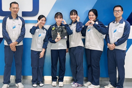 2024年8月下旬、タイのラヨン県にある株式会社UACJの工場へ。同社は、東京に本社があり、坂井市三国町に福井製造所を設けている。アルミニウムを中心とする非鉄金属製の缶材や板材を製造し、タイの工場でもこれらを生産しているが、工学系ではない小林さんは、人事・教育を担う人材育成課に配属された。そして担当したのが、タイ人従業員対象の研修計画やその周知業務である。「ごみの捨て方や喫煙場所の徹底など基本的ルールの研修、安全講習などの内容を考え、開催日時や場所を知らせるためのポスターも作成しました。指導してくださったタイ人の社員さんとのやり取りは英語でしたが、ゆっくり話してくださったおかげで会話が理解でき、スムーズに業務を行うことができました」。