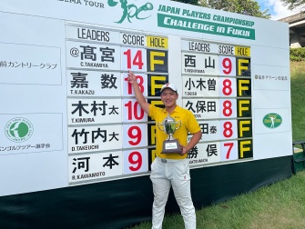 最終の18番ホール。嘉数選手が先にバーディーを取り、同点に追いつかれる。「最後のパターを決めれば勝ち。外せば同点のままプレーオフになります。嘉数選手はプロ。経験の差からもいっても、プレーオフは自分に不利だと思っていたので、絶対にこのホールで終わる、と自分に言い聞かせていました」。結果は、最後のパターを決めてバーディーを取り、1打差で勝利。3日間のトータルは196ストローク、14アンダーで、ABEMAツアー史上6人目のアマチュア優勝を果たしたのである。